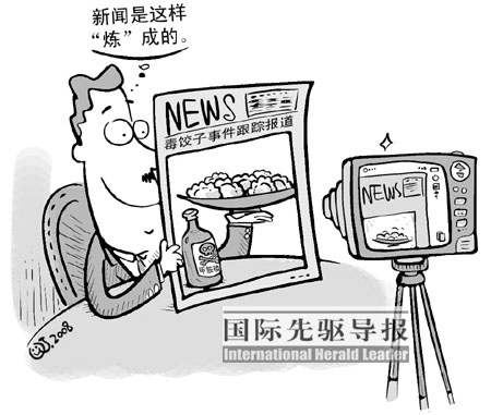 第二天,許多平面媒體也加入“炒作戰(zhàn)團”,報道用語也由“餃子中毒事件”升級為“毒餃子”。日本右翼媒體《產(chǎn)經(jīng)新聞》不僅連篇累牘報道,還把駐京記者的博客放在了其網(wǎng)站的顯要位置。而發(fā)行量最大的保守報紙《讀賣新聞》則特別強調(diào)是“中國產(chǎn)餃子”,明顯是把責任推給中國。而這天的共同社則繼續(xù)發(fā)揮它作為通訊社的優(yōu)勢,接連播發(fā)12條相關(guān)新聞,包括一條“‘毒餃子’事件令人擔憂北京奧運食品安全問題 ”的評論。