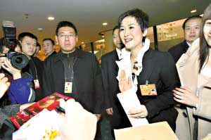 李:這次我被分配到婦聯(lián)界別,我看到我們界別里面有我們社會各界的精英,她們可能是女將軍、女科學家、女作家,還有女藝術家,我們希望在這個節(jié)日里為我們婦女建立合法的保障機制,與全社會共享我們今天經(jīng)濟的成果,為我們婦女過一個非常美好的節(jié)日祝福她們。