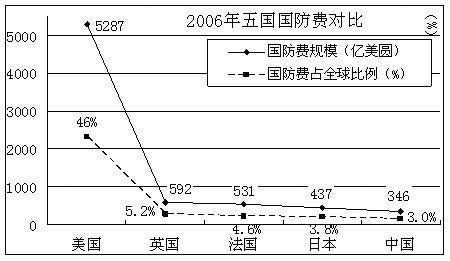 圖一 2006年部分國家國防費(fèi)開支占全球開支比重。