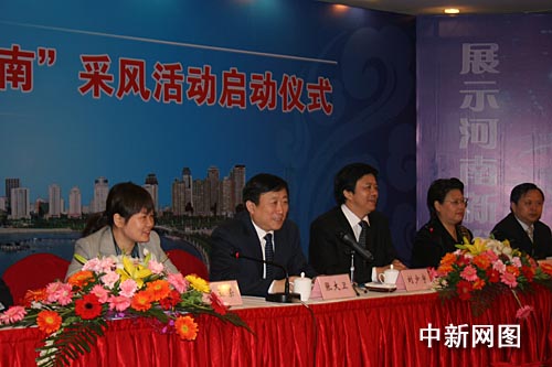 中新網(wǎng)4月16日電 由中共河南省委宣傳部主辦的第七屆“網(wǎng)上看河南”采風(fēng)活動(dòng)16日上午在鄭州正式啟動(dòng),本次活動(dòng)自16日正式開始,20日結(jié)束,走訪鄭州,開封,洛陽(yáng),新鄉(xiāng)及登封等地。河南省委宣傳部邀請(qǐng)了人民網(wǎng)、新華網(wǎng)、中新網(wǎng)、新浪、搜狐等網(wǎng)站負(fù)責(zé)同志和采編人員參加了此次活動(dòng)。