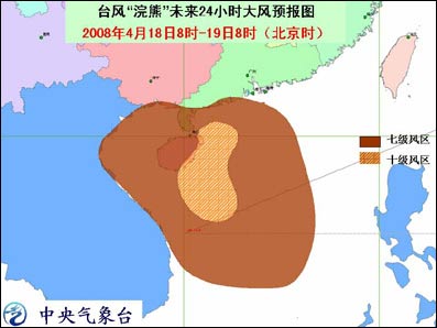 受其影響,今天白天到夜間,南海中北部海面、海南南部和東部沿海將有8-10級大風,瓊州海峽、廣東沿海、海南西部沿海、廣西沿海、北部灣海面也將有7-8級大風,臺風中心經(jīng)過的附近海面或地區(qū)的風力有11-13級;海南中東部、廣東沿海以及雷州半島將有大到暴雨,其中海南東部的部分地區(qū)有大暴雨。