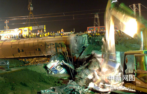 周一,膠濟(jì)鐵路上兩列客車相撞,七十人遇難、四百多人受傷。晚間十點多,當(dāng)記者趕到事故現(xiàn)場時,這里已難發(fā)現(xiàn)旅客的蹤跡,F(xiàn)場是那些還在忙碌的施工工人、警察和軍人。