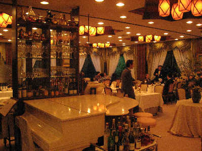 在小坂哲瑯的帶領(lǐng)下,記者來到將在6日晚間招待胡錦濤主席用餐的三樓宴會(huì)廳。大廳入口處擺放著一架白色三角鋼琴,左側(cè)的玻璃架里有各色葡萄酒供賓客享用。鋪著淡色桌布的餐桌上擺著鮮花和精致的法式餐具。在悠揚(yáng)的長笛曲中,宴會(huì)廳的氛圍顯得格外寧謐優(yōu)雅。記者注意到,這里的侍應(yīng)生大多較為年長,他們身穿西裝套服,彬彬有禮,風(fēng)度不凡。