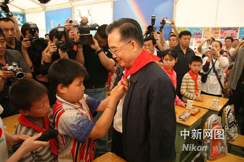 “我看到了寬敞的帳篷,你們又有了學(xué)習(xí)的地方。你們值得我們驕傲,值得中國驕傲。你們失去了父母親人,在極其悲痛的情況下,仍然不忘學(xué)習(xí)。今后生活的時(shí)間還長(zhǎng),今后要走的路還很久,你們要好好學(xué)習(xí),提高本領(lǐng)!