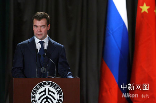 俄總統(tǒng)在北大演講 首先向中國所受災(zāi)害表示慰問