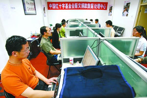 截至昨日,中國紅十字基金會已確認(rèn)70萬份捐款,“財務(wù)部的人手已經(jīng)從3人增加到30多人,但依照目前的速度,至少還需要1個月才能將目前的所有捐款人確認(rèn)函發(fā)出”。昨日,中國紅基會秘書長王汝鵬表示。