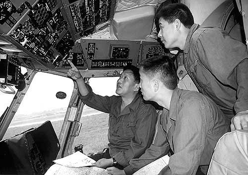 機長邱光華,51歲,羌族,四川茂縣人。 1957年4月出生,1974年4月入伍,1976年6月入黨,大專文化,大校軍銜,四種氣象飛行指揮員、副師職特級飛行員,近年多次執(zhí)行軍事演習、衛(wèi)星回收和搶險救災等重大任務,總飛行時間5800多小時,榮立二等功2次,三等功4次。
