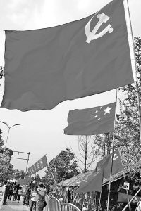 飄揚(yáng)的紅旗在災(zāi)區(qū)隨處可見(張雷/攝)