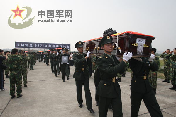今天上午10時(shí)30分,運(yùn)送失事直升機(jī)機(jī)組成員靈柩的汽車,緩緩駛進(jìn)某陸航團(tuán)鳳凰山機(jī)場(chǎng)。迎送烈士靈柩儀式正式開始。