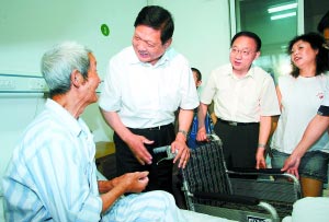 德陽(yáng)市人民醫(yī)院收治了部分在地震中受傷的群眾。當(dāng)聽(tīng)說(shuō)許多傷者接受了截肢手術(shù),劉淇在行前特意囑咐工作人員,購(gòu)買(mǎi)了100部輪椅贈(zèng)送給什邡人民。83歲的劉文友因受傷腿部截肢,劉淇俯下身把他攙到輪椅上,叮囑老人家好好休養(yǎng),爭(zhēng)取早日康復(fù)。北京市援建的什邡市社會(huì)福利中心建成兩周,已經(jīng)接收了近百名孤老,面對(duì)北京市領(lǐng)導(dǎo),吳定安老人泣不成聲,他的兩個(gè)兒子,都在地震中遇難。劉淇安慰老人,福利院就是你的家,北京人都是你的親人。