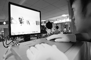 X光檢測(cè)機(jī)的屏幕上顯示出乘客包裹中的物品!”緢(bào)記者 王申 攝