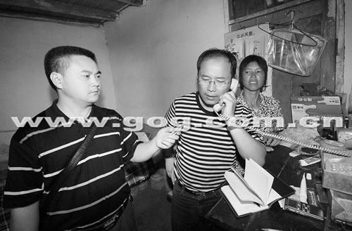 記者電話采訪陳光權,左為陳的母親