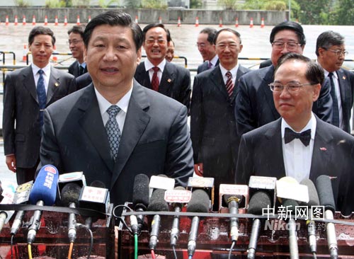 國(guó)家副主席習(xí)近平6日上午經(jīng)落馬洲抵港后發(fā)表簡(jiǎn)短講話。中新社記者 任海霞 攝
