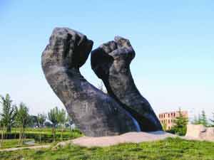 陳雙全任市長期間,銅川市內(nèi)的“雙拳”雕像。本報記者 楊繼斌 攝