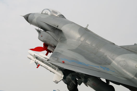 這架殲十是完全根據(jù)真機的一比一高仿模型,機上細節(jié)分毫畢現(xiàn)。殲十作出大仰角爬升的姿態(tài),翼下掛有國產(chǎn)雷石6滑翔制導(dǎo)炸彈、霹靂9C近距格斗空空導(dǎo)彈及霹靂12中距空空導(dǎo)彈。