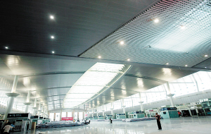 副廣場為公交中心,總建筑面積約4萬平方米,設(shè)16個(gè)停車島。地下一層為出租車?考⒋髲d,地下二層為社會(huì)車輛停車場,可停放汽車300多輛。