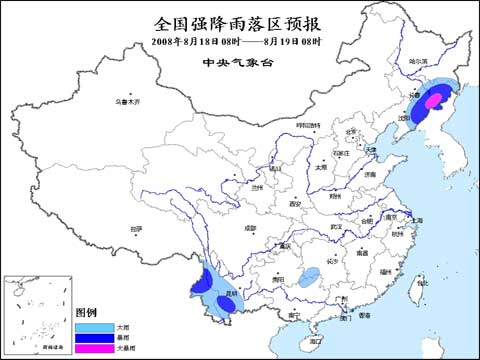 預(yù)計(jì)今天白天到夜間,黑龍江東南部、遼寧中東部、吉林東北部、湖南西南部、廣西西北部、云南中西部等地的部分地區(qū)有大雨或暴雨,其中吉林東部的局部地區(qū)有大暴雨。