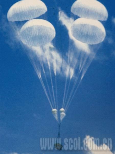 “神七”返回艙回收傘采用異型設(shè)計,由紅白兩種顏色組成,傘兩邊的強力要比中間高。屆時,96根傘繩撐起回收傘,“神七”飛船返回艙將借助回收傘以完美的姿勢落地。