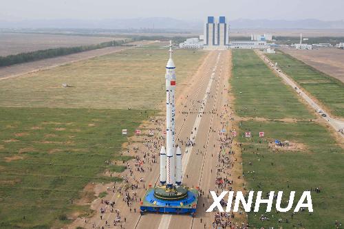 20日15時(shí)15分,當(dāng)神舟七號載人飛船、長征二號F運(yùn)載火箭和逃逸塔組合體,經(jīng)過一小時(shí)零五分的行駛,順利垂直轉(zhuǎn)運(yùn)至1500米之外的發(fā)射區(qū)時(shí),現(xiàn)場人群中爆發(fā)出一陣歡呼。這標(biāo)志著神七任務(wù)已經(jīng)進(jìn)入最后的發(fā)射準(zhǔn)備階段。