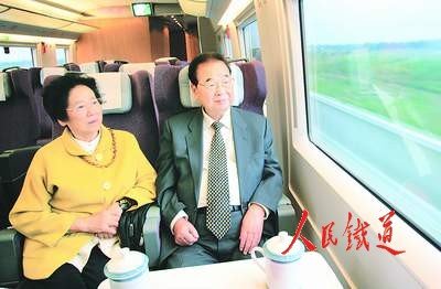隨后,李鵬走進(jìn)駕駛室,興致勃勃地察看了動車組列車控制系統(tǒng)和動車組司機(jī)的操縱情況。劉志軍向李鵬介紹:我們乘坐的列車是靠計(jì)算機(jī)控制的。中央指揮系統(tǒng)把指令傳輸?shù)杰壍郎系南嚓P(guān)設(shè)備,列車從軌道上的設(shè)備取得信號,實(shí)施行車、加速、減速、制動等技術(shù)動作。這一系統(tǒng)是目前世界上最先進(jìn)的。李鵬又了解了京津城際鐵路占地情況,詢問如何解決與公路交叉等問題。劉志軍匯報(bào)說,京津城際鐵路87%是橋梁,每公里橋梁與傳統(tǒng)的路基相比可以節(jié)省45畝土地,同時高架的橋梁也杜絕了與公路的平面交叉,有利于保證安全。劉志軍說,目前在建的京滬高速鐵路和一大批客運(yùn)專線都借鑒了京津城際鐵路的成功經(jīng)驗(yàn),以橋代路的模式被廣泛應(yīng)用。李鵬稱贊京津城際鐵路創(chuàng)造了世界高速鐵路的最新成果。他關(guān)切地詢問,像京津城際這樣的高速鐵路,現(xiàn)在建設(shè)的有多少?劉志軍說,目前在建的高速鐵路和客運(yùn)專線有7000公里,再過3至5年,京滬、京廣、京哈、隴海(東段)、哈大、東南沿海等客運(yùn)專線將全線貫通。李鵬聽了非常高興。他說,近年來,鐵路建設(shè)和技術(shù)裝備現(xiàn)代化的發(fā)展很快,老百姓享受到了鐵路改革發(fā)展的成果。他希望鐵路部門高標(biāo)準(zhǔn)、高質(zhì)量地建好京滬高速鐵路和其他客運(yùn)專線,為旅客提供更加便利、快捷的出行條件。
