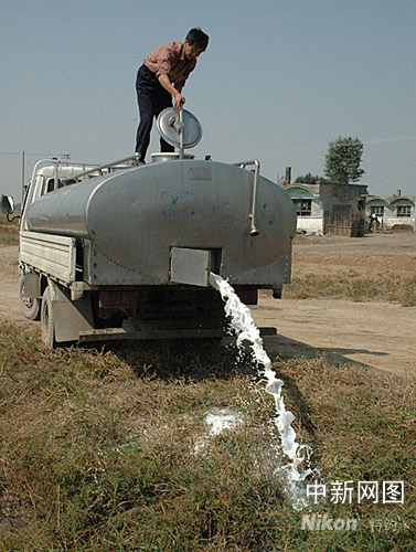 中新網9月29日電(武為民)“三鹿奶粉”事件發(fā)生后,山西奶業(yè)生產受到沖擊。奶牛養(yǎng)殖大縣山陰縣,幾個奶牛養(yǎng)殖大戶此前將前一天擠的1萬斤鮮奶傾倒在河溝里。白嘩嘩的牛奶匯成小河。因乳品企業(yè)停產整頓,收奶站負責人隱匿找不到,無耐的奶農只好將牛奶倒掉。