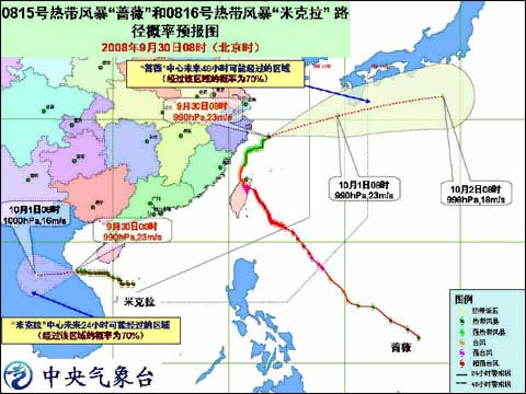 熱帶風(fēng)暴“薔薇”與“米克拉”路徑概率預(yù)報(bào)圖