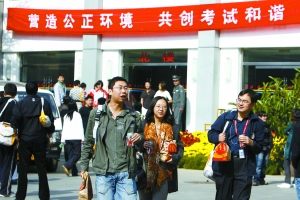昨日11時許,北京勞動保障職業(yè)學(xué)院,考生們完成考試走出考場。孫純霞 攝