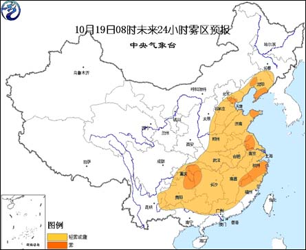 中新網(wǎng)10月19日電 據(jù)中國(guó)氣象局網(wǎng)站消息,中央氣象臺(tái)10月19日6時(shí)繼續(xù)發(fā)布大霧預(yù)報(bào):