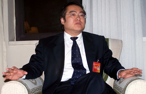 工會(huì)十五大代表、中華全國(guó)總工會(huì)民主管理部部長(zhǎng)郭軍接受記者采訪。