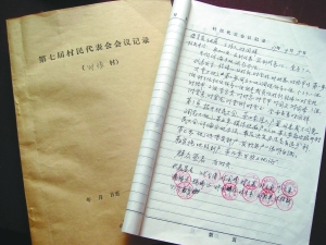 村代會一份會議記錄上印著村代表的圓章。
