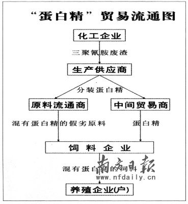 這是化工產(chǎn)品三聚氰胺在飼料行業(yè)內(nèi)非法添加的第一個(gè)曝光案例。一位業(yè)內(nèi)人士透露,早在2004年,該公司就開始生產(chǎn)“生物蛋白精”,并在網(wǎng)上公開求購三聚氰胺廢料。