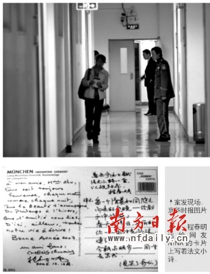 劉長(zhǎng)敏介紹,殺人嫌疑人為政治與公共管理學(xué)院一名2005級(jí)學(xué)生,姓付,天津生源。案發(fā)后,付某一直在接受警方的調(diào)查,學(xué)校沒(méi)有與其接觸,所以作案動(dòng)機(jī)尚不清楚。