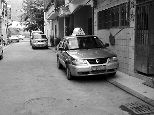 在三亞一小區(qū)巷道內(nèi),一輛出租車未出車。