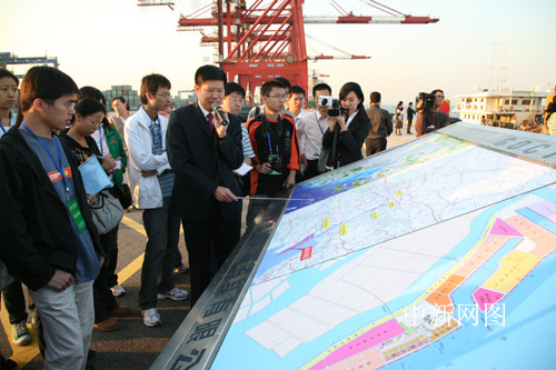11月11日,廣州港南沙港區(qū)負(fù)責(zé)人向網(wǎng)絡(luò)媒體記者介紹南沙港區(qū)情況