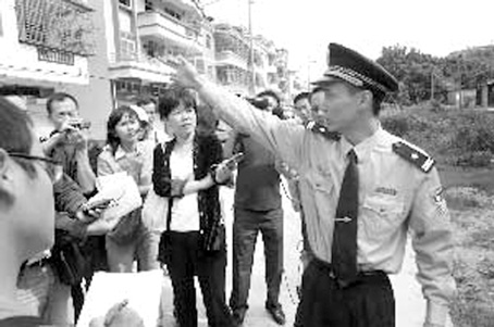 大約3個小時后,在斗門區(qū)白蕉派出所,珠海市警方舉行了媒體見面會。見面會上,11月5日開槍擊斃泥頭車司機(jī)駱某的警察余新化終于亮相,并前往開槍現(xiàn)場向記者講述了開槍過程。