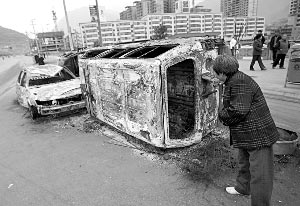 李學(xué)春說,目前,隴南市紀(jì)委、團(tuán)市委、市婦聯(lián)、市總工會、市信訪局、市檔案局等機(jī)關(guān)單位辦公設(shè)施及文件資料全部砸壞燒毀,已不具備辦公條件;市檔案局大部分檔案被燒毀;中樓職工宿舍全部被砸燒,私人財(cái)產(chǎn)損失嚴(yán)重;與此同時(shí),不法分子將停放在長江大道的7輛警車砸毀并焚燒。