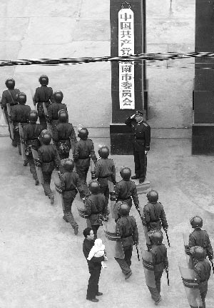 中午,省政府省長助理、公安廳長何挺同志趕到市委大院,對處置這起事件進(jìn)行了具體部署,公安民警、武警將聚集人員全部清理和疏散出市委大門。