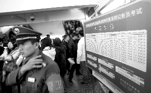 據(jù)了解,今年的公務(wù)員考試中,北京地區(qū)考生9.5萬人,比去年增加了1.5萬人,北京今年共在全市設(shè)立了132個(gè)考點(diǎn)、3186個(gè)考場。今年,國家公務(wù)員考試考錄比例為57比1,較之去年46比1的考錄比例競爭更加激烈,不少參加考試的考生戲稱自己是“炮灰”。