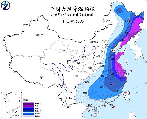 2008年12月5日08時全國大風(fēng)降溫預(yù)報圖