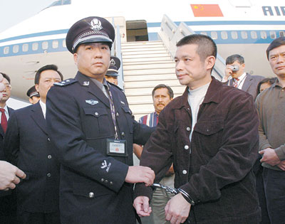 2004年4月16日,“開(kāi)平”案主犯余振東被押回中國(guó)。新華社資料圖片