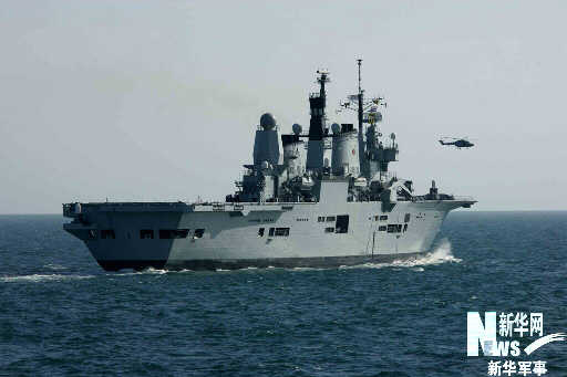 參加聯(lián)合演的英國海軍“皇家方舟”號(hào)航母艦和“山貓”直升機(jī)。查春明 攝