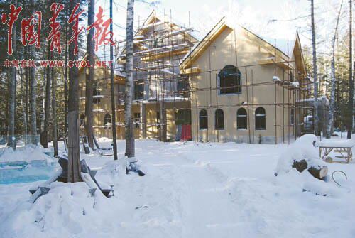這里是長白山的原始森林,位于國家劃定的自然保護區(qū)內(nèi),緊靠著長白山北坡的景區(qū)大門。樹林里,超過200歲的云杉、紅松和冷松高聳著。別墅就掩映在樹林中。