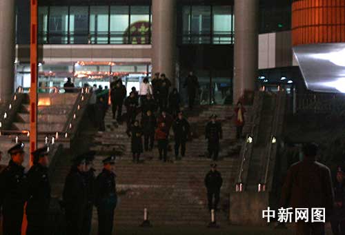 12月31日晚22時(shí)10分, 三鹿集團(tuán)及原董事長田文華等被控生產(chǎn)銷售偽劣產(chǎn)品案庭審結(jié)束。圖為當(dāng)晚旁聽者撤出法庭。作者:喬相軍