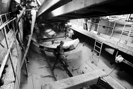 隨后,記者進(jìn)入F9地裂縫左線隧道。除隧道內(nèi)略微殘存一些燃燒過(guò)的煙味,起火點(diǎn)處的隧道墻壁上留有被燃燒源熏黑的印跡外,其他均恢復(fù)正常。沿隧道一直向北,就能看到盾構(gòu)機(jī)正在緊張施工。