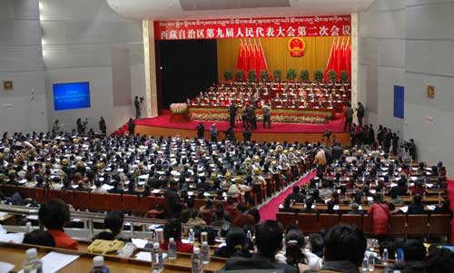 1月14日早上9點40分,西藏自治區(qū)九屆人大二次會議在拉薩隆重開幕。西藏自治區(qū)黨委副書記、自治區(qū)人大常委會主任列確主持會議。自治區(qū)黨委副書記、自治區(qū)主席向巴平措做《政府工作報告》。(韓連啟)