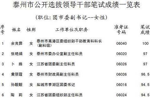 平心而論,這位靚靚同學(xué)的工作應(yīng)該是不錯(cuò)的。在某網(wǎng)站論壇上,網(wǎng)友“木有下文”貼出了“泰州市公開選拔領(lǐng)導(dǎo)干部筆試成績(jī)一覽表”,孫靚靚以94.5分居第五名,但在其它考核中她迎頭趕上,最終奪得泰州市團(tuán)市委副書記一職。該網(wǎng)友還提供了一份網(wǎng)上資料,“孫靚靚是作為江蘇省委組織部2006屆選調(diào)生被選為預(yù)備干部的。按國(guó)家的有關(guān)規(guī)定,各單位的選調(diào)生一般都作為黨政領(lǐng)導(dǎo)干部后備人選和縣級(jí)以上黨政機(jī)關(guān)高素質(zhì)的工作人員人選,而在上調(diào)之前基本上都會(huì)放在基層煅煉。”
