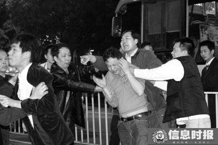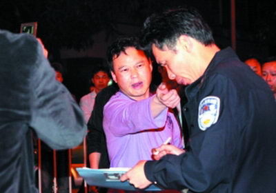 在現(xiàn)場(chǎng),記者看到該名穿淺紅色衣服的男子在不停打電話,該名男子身高大概1米65左右,情緒暴躁,揮舞手臂。在接受警方調(diào)查時(shí),該名男子忽然一拳將旁邊面包車司機(jī)的兒子陳家文打倒在地。隨后還推開前來執(zhí)勤的交警!澳銈?nèi)枂,知不知道我是誰?”該名男子向人群叫囂,現(xiàn)場(chǎng)一片混亂。 (信息時(shí)報(bào))