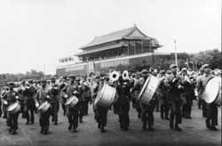 1950年10月1日,中國人民迎來了共和國的第一個生日。500名軍樂隊員在廣場上站立演奏了好幾個小時之后,在總指揮晨耕的指揮下,邁著矯健、整齊的步伐,演奏著激揚、堅定的《中國人民解放軍進行曲》,最后行進通過天安門廣場,接受毛主席檢閱。望著一排排朝氣蓬勃的軍樂戰(zhàn)士,毛澤東主席高興地頻頻揮手,高喊:“人民萬歲!軍樂團萬歲!”隨后轉過身來對聶榮臻說:“我們中國這么大,人口這么多,要成立千人軍樂團!