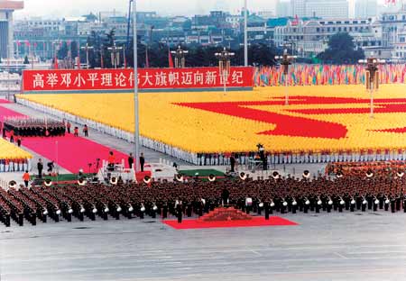 在開國大典那一天,這支年輕的軍樂隊用大部分從敵人手中繳獲的樂器(當天甚至連圓號都沒有),演奏了《東方紅》、《義勇軍進行曲》、《中國人民解放軍進行曲》、《騎兵進行曲》、《青年進行曲》等充滿民族色彩的樂曲,他們連續(xù)站立演奏了近4個小時,直到群眾游行結束。