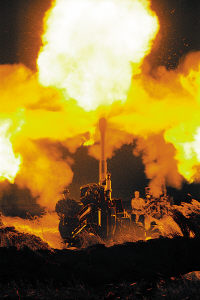 筆者看到,演習(xí)中他們始終用火力毀傷效果來控制戰(zhàn)斗進程。中軍帳里,師、團、營三級指揮員時而網(wǎng)上點對點發(fā)號施令,時而用密語下達作戰(zhàn)命令。副師長李春紅一語中的:“復(fù)雜電磁環(huán)境下作戰(zhàn),火力的地位和作用更加凸現(xiàn),由過去從屬地位的火力準備行動上升為決定戰(zhàn)斗進程的火力突擊行動。”話音未落,電臺里傳來師長汪海江命令:“各攻擊群延緩攻擊;鹆f(xié)調(diào)組,立體補充聯(lián)合火力打擊!”